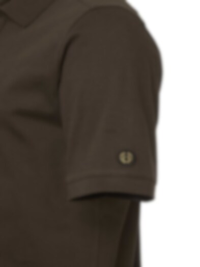 • Classic polo collar with horn-effect buttons